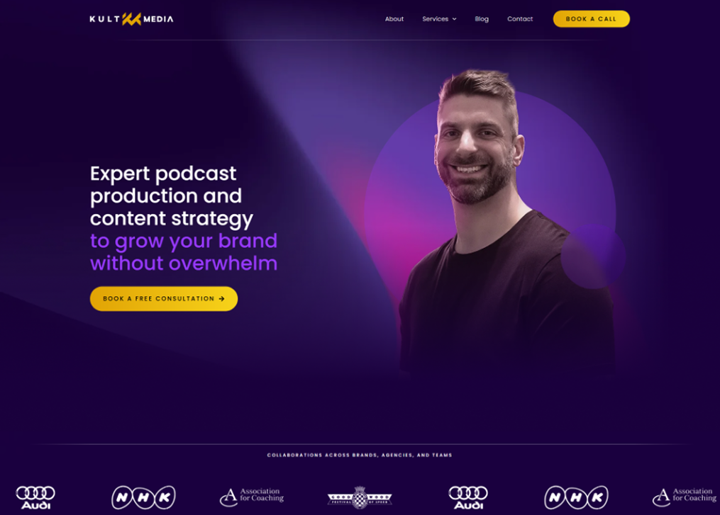 Kult Media is a modern, client-focused website for a professional media brand that helps businesses and creators.