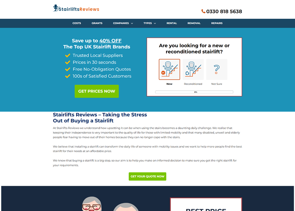 Stair Lifts Reviews is a modern, client-focused website designed for a professional accessibility brand that helps individuals and families.