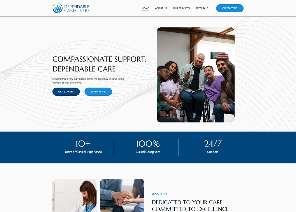 Dependable Caregivers is a modern, client-focused website designed for a professional caregiving brand that helps families and individuals.